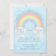 These dreamy rainbow invitations feature cute watercolor clouds and faux silver glitter details with a light blue background and sparkle rain illustration. Personalise your invitation with your event details in beautiful script typography.