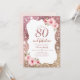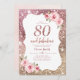 Sparkle rose gold glitter and floral 80th birthday invitation