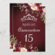 Sparkle Tiara Silver Burgundy Floral Quinceanera Invitation