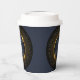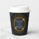 Elegant and luxurious anniversary paper cup with a shiny golden ring and glitter. 50th wedding anniversary