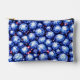 Sparkling blue gemstones and crystals, featuring various sizes and faceted surfaces that reflect light. The arrangement creates a visually rich texture with hints of red peeking through.