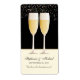 Two bubbling flutes of champagne wine labels against a black and cream background. Personalised with names, date, and a short message.