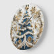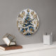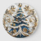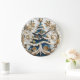A beautifully crafted Christmas clock features an intricately designed tree adorned with gold and blue accents. Festive decorations include delicate snowflakes and swirling patterns, bringing a whimsical touch to seasonal celebrations.