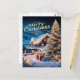 A festive Christmas card featuring a beautifully decorated Christmas tree surrounded by brightly wrapped presents, giving off a warm holiday glow.