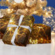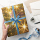 Glamourous Christmas wrapping paper with red and golden Christmas baubles, sparkling lights, tinsel and Christmas tree branches. NEW improved versions with seamless tile (see below):