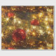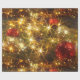 Glamourous Christmas wrapping paper with red and golden Christmas baubles, sparkling lights, tinsel and Christmas tree branches (seamless tile)