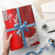 Add some sparkle and shine to your gifts this holiday season with this stunning red and silver wrapping paper. This festive paper features a dazzling pattern of diamond-studded reindeer, leaping through the air over a vivid red background. All around them are modern, silver Christmas trees and the traditional Christmas text of Merry Christmas. This wrapping paper is sure to impress your loved ones with its elegant and eye-catching design. Whether you’re wrapping a small or large gift, this paper is easy to cut and fold, and comes in variety of sizes. Make your presents stand out under the tree with this stunning red and silver wrapping paper. Order yours today and get ready to spread some holiday cheer! 🎁