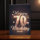 Celebrate seven remarkable decades with this beautifully crafted greeting card. It has a dark background with a sparkling, glittery design that gives it an elegant and festive feel. The text reads "Happy 70th Birthday" and a placeholder name in a mix of cursive and bold fonts, with the number "70" prominently displayed in the centre. The number has a shiny, reflective pattern, making it stand out. Surrounding it are decorative elements like stars, musical notes, and light reflections, adding to the celebratory atmosphere. The front and inside text are fully customisable, allowing you to personalise every detail. Need it quickly? Opt for an instant digital download for easy sharing. Make their 70th birthday truly unforgettable with a card as unique as their journey.