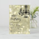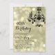 A fancy chandelier on a backdrop of gold lights accents this birthday invitation.