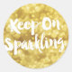 "Keep On Sparkling" quote on a sparkling gold bokeh glittery blurry background.