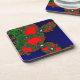Sparkling Green on Red on Blue Cork Coasters