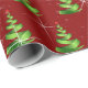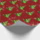 Sparkling Green Ribbon Christmas Trees On Red Wrapping Paper