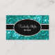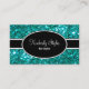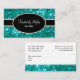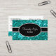 Sparkling stylish hairdresser business cards including simulated turquoise coloured digital glitter digitally printed on the business cards. Personalise the text on both sides and present your business cards in fashionable style with two side printing included.