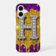 Sparkling Letter H With Gold Glitter Drip iPhone 16 Case