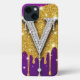 Sparkling Letter V With Gold Glitter Drip iPhone Case