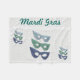 These masks are designed in blue, green and purple and are all decorated with sparkles. A great mask for mardi Gras or any other party. Mardi Gras is printed on this blanket. A white backround and border was added. This fleece blanket is available in assorted sizes. Leave as is or change the words to your own. A great gift.