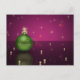 Glamorous Christmas illustration featuring a green Christmas ball with golden elegant script Merry Christmas lettering and gold pearls on a purple bokeh background with sparkling stars.