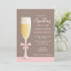 Invite your family and friends to meet your sweet new baby girl at a "Sip and See" open house with this fun invitation featuring a "sparkling" champagne flute of bubbly, tied up prettily with a little pink bow.  A great way to have a set time and date for introducing baby to everyone at once.  Perfect for a second child or in lieu of a traditional baby shower.