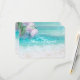 RSVP Cards for Wedding | Beach Wedding Theme. Beautiful Sparkling clear ocean waters glistening in the sunlight, white water foam on the clean sandy beach with a palm frond and light pink flower grace the corner Casual or formal, for a beach wedding or destination island wedding