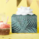 Turn the glam up a notch with this unique tropical print of overlapping palms leaves in a seamless pattern that adds a little sparkle and depth of shadows to the lush foliage. This version is glittering shades from light teal to dark sea green. Search ID831 to see other colour options and additional products with this design.