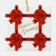 A Digitalbcon Images Design featuring a Christmas Red, White and Gold colour theme with a variety of custom images, shapes, patterns and styles in this one-of-a-kind "Sparkling Red Bow Season's Greetings" Christmas Ornament. This colourful and attractive design comes complete with customisable text lettering on the reverse as well as changeable background colour to make this the perfect accessory for your holiday gift giving this festive season. COMPLETE YOUR CHRISTMAS SHOPPING WITH MATCHING GIFT IDEAS FROM THE CHRISTMAS RED BOW COLLECTION AVAILABLE IN THIS STORE.