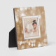 Made to look dimensional, a border of stars and dots on gold creates a beautiful frame for your favorite photo on this tabletop plaque with a built-in easel. The image is put directly on the hardboard panel for a stunningly crisp image with an easy wipe clean surface. Great as a gift or to display your favorite photo in your home. TIP: If using square plaque, you might need to crop your photo to a square BEFORE uploading it for best results.