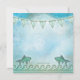 Pool party invitation featuring waves and fishes on a painted blue background with bunting. This invitation works well for both an adult party or for families and children. The front top image can be deleted to remove the label if you do not need it.