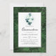 Sparkling White Roses and Green Damask Quinceañera Invitation