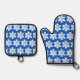 Sparkling white snowflakes blue background oven mitt & pot holder set