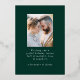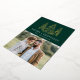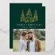 Modern & elegant holiday card featuring your photo complemented by three snowy gold foil pine trees with a dark green background (or colour of your choice). "Merry Christmas" is displayed in a white, modern serif font with your name or custom text below. The photo holiday card reverses to display an additional photo with your custom message below in white text.