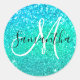 Sparkly Aqua Green Mermaid Faux Glitter Monogram Classic Round Sticker