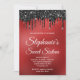 Sparkly Black Glitter Dark Red Gradient Sweet 16 Invitation