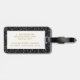Black glitter luggage tag with a fun bold large initial and custom name. –– Click CUSTOMIZE to edit text colour, font, and placement or to change stripe colours. Coordinating monogrammed gift ideas in the Paper Grape Designer Shop!