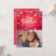Christmas lights with a pink and red bokeh background. Add your own photo and customise for personalise holiday greetings.