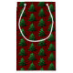 Sparkly Christmas tree green Dark red pattern Small Gift Bag
