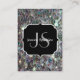 Personalise and customise elegant faux sparkly business card with your initial and name. Beautiful glamourous silver shiny glitters sparkles. Photo of silver mosaic sparkles not actual glitter.