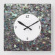 Sparkly wall clock home decor for her bedroom. Beautiful glamourous silver shiny glitters sparkles. Photo of silver mosaic sparkles not actual glitter!