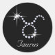 Sparkly glam design features the zodiac / astrological symbol for Taurus in diamond rhinestones on black background. Taurus is assigned to those born April 21 until May 20