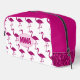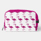 Sparkly flamingo Pink faux sparkles custom white Monogram Toiletry Bag. Monogram Personalise with your custom initial and name. Fun faux sparkly fashionable summer Accessories for her. Beautiful girly glamourous pink shiny glitters sparkles summer exotic flamingo bird. Photo of pink sparkles, not actual glitter! No messy glitter to the touch!