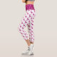 Sparkly flamingo Pink faux sparkles custom white Capri Leggings. Fun faux sparkly capri leggings fashionable summer apparel for her.