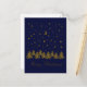 Personalise, Golden sparkle Christmas tree, christmas spruce, moon, stars on dark blue on greeting card.