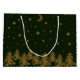 Sparkly gold Christmas tree, moon, stars on green Large Gift Bag