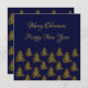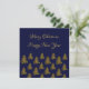 Sparkly gold Christmas tree on blue Christmas Holiday Card