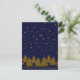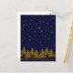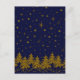 Sparkly Gold Christmas tree, stars, snow on blue Postcard