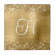 Sparkly Gold Glitter and Foil Monogram Ceramic Tile