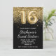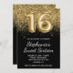Sparkly Gold Glitter Black Balloon Sweet Sixteen Invitation