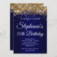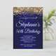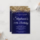 Sparkly Gold Glitter Navy Gradient 50th Birthday Invitation