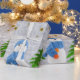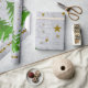 Sparkly gold stars, snowman and green tree wrapping paper