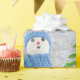Hand sewn snowman from white sock and filled with grain, crochet blue hat and scarf and glued eyes and mouth black plastic and glued nose from red pearl with gold border, green tree and gold sparkly stars on abstract silver paper on wrapping paper. You must know that you get a photo!
