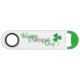 Celebrate Saint Patrick Day with this beautiful beer bottle opener. It’s decorated with a festive green glitter sparkly shamrock and the message Happy St Patrick’s Day written in beautiful green glitter and black calligraphic typographies.